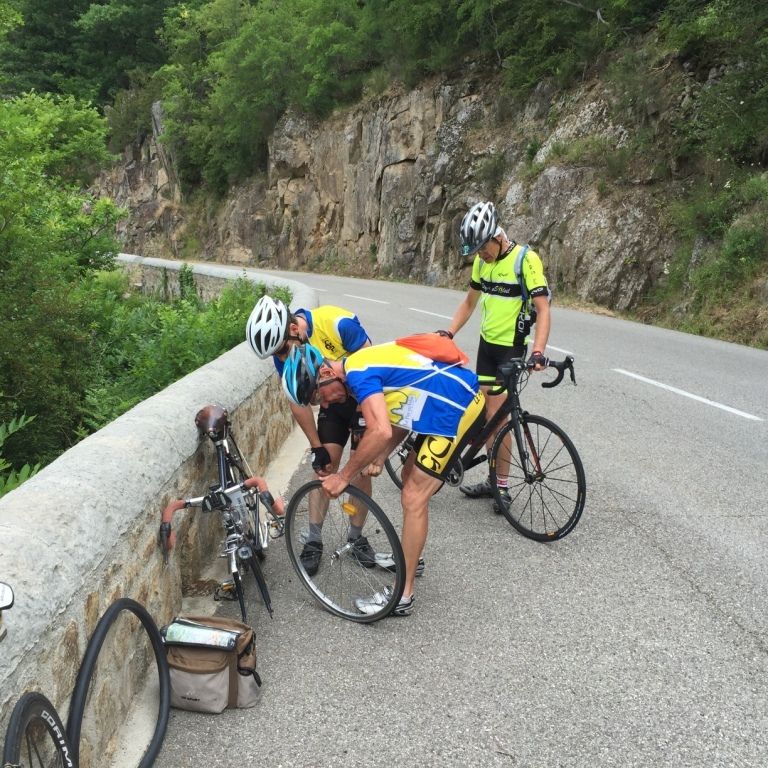 Lundi 8 juin, toute l'équipe est rentrée au Puy la veille au soir. Toute ? non ! car un groupe de six irréductibles cyclos a décidé de rentrer en Haute-Loire à vélo...